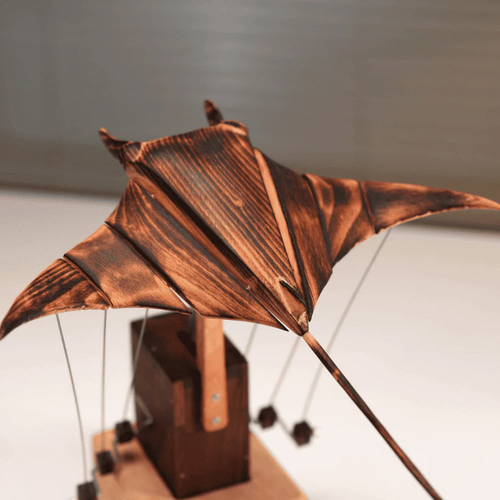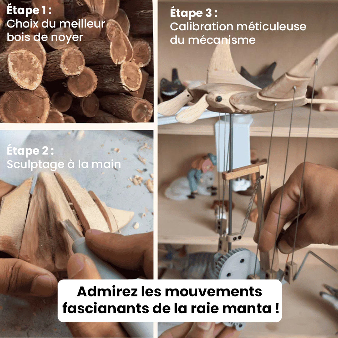 Laissez-vous charmer par les lignes ondoyantes de cette sculpture inspirée de la grâce des raies manta. Son mouvement fluide et continu évoque la danse de l’océan, offrant une expérience visuelle apaisante et captivante dès le premier regard.